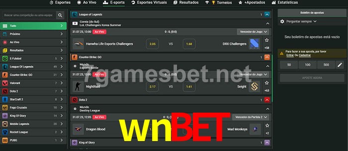 O wnbet oferece uma grande seleção de opções de apostas em e-sports com probabilidades competitivas
